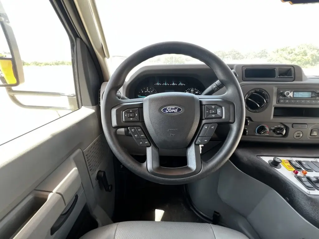THIS 14 PASSENGER 2025 FORD COLLINS WITH HYD BRAKES HAS 242 MILES.