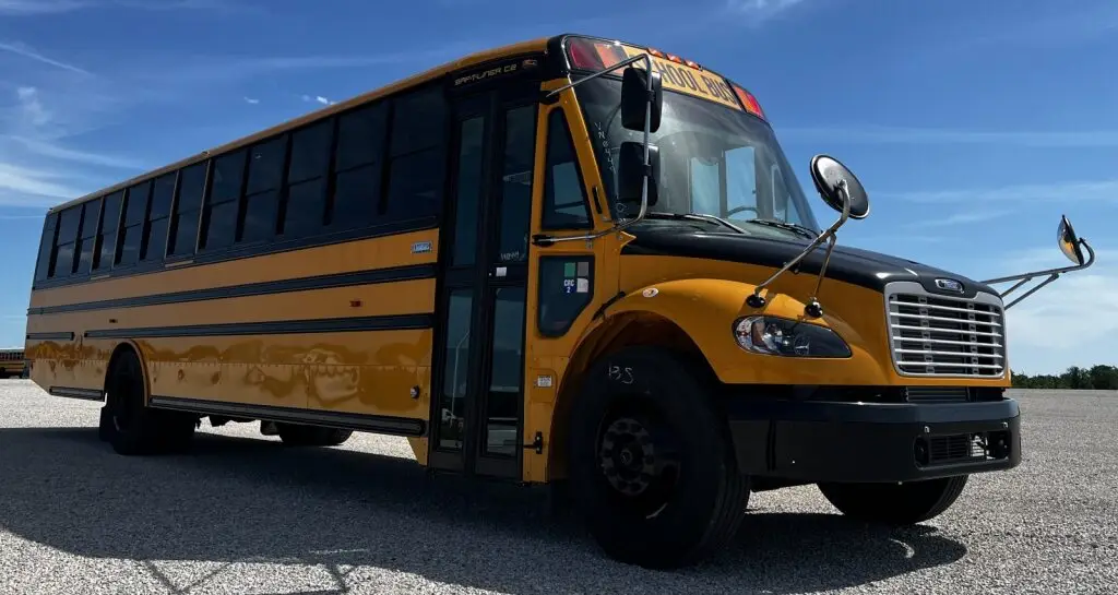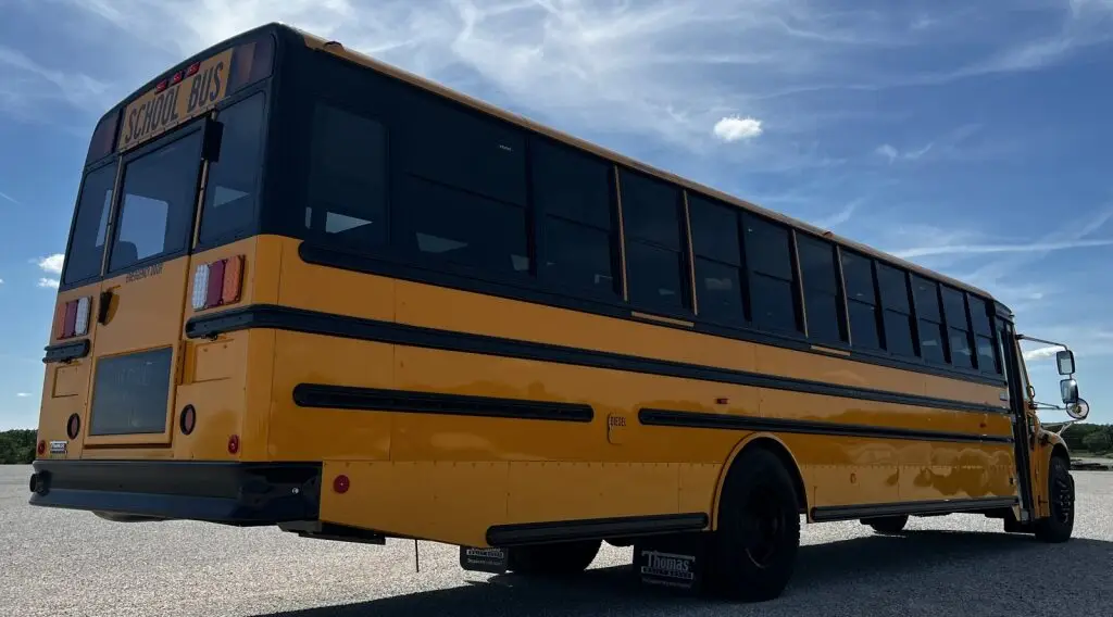THIS 77 PASSENGER 2026 THOMAS C2 SCHOOL BUS WITH AIR BRAKES HAS 1,100 MILES.